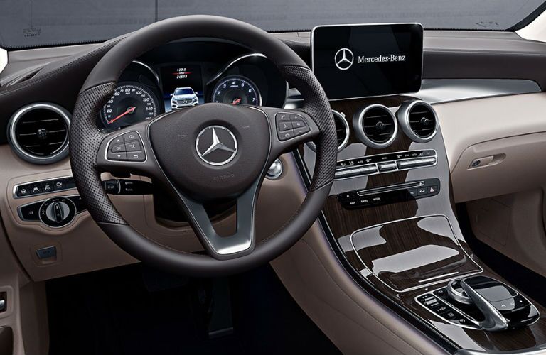 Stepping inside the GLC Coupe reveals a spacious, upscale cabin space packed with advanced amenities and intuitive technology. One of the most notable features is the 7" freestanding color display and its central controller located on the center console. The screen and controller give users convenient control of audio, hands-free calling, and navigation functions. Five years of Mercedes-Benz Connect services also come standard.
