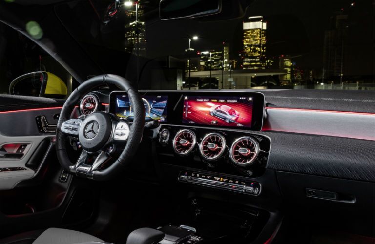 The 2020 Mercedes-Benz A-Class AMG® A 35 an exciting trim of the A-Class sedan. Here at Mercedes-Benz of Arrowhead, near Gilbert, AZ, we have researched this trim. Now, we share this research with you. Let’s take a look at the power and performance of the AMG® A 35. You’ll have a 2.0L I4 Turbo engine gives you 302 horsepower and 295 lb.-ft. of torque. You can accelerate from 0 to 60 miles per hour in only 4.7 seconds. There’s also the AMG® SPEEDSHIFT® DCT 7-speed automatic transmission, which pairs nicely with the AMG® Performance 4MATIC®* all-wheel drive. All of these engine specifications work together to make your drive an exhilarating experience. Now that we know a bit more about the power and performance we can take a look at some of the technology and comfort features the 2020 AMG® A 35.