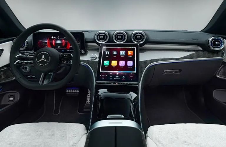 Apart from the standard 12.3-inch digital driver’s display, the 2024 Mercedes-Benz CLE Coupe has an 11.9-inch portrait central multimedia display. Wireless Android Auto™ and Apple CarPlay® come as standard smartphone connectivity features. Mercedes-Benz also offers a high-end Burmester® surround sound system with Dolby Atmos® for a musically enhanced interior audio experience.