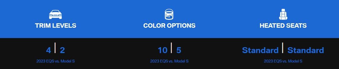 You continue to have the power of choice with the 2023 EQS. This model is available in four trim levels—450+, 450+ 4MATIC®, 580 4MATIC®, and AMG EQS—while the Tesla Model S offers two trims.
